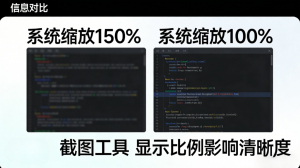 基于大量实际使用场景,建议在频繁截图的工作环境中,将系统显示比例设置为 100%。这样可以最大程度避免因系统插值造成的视觉模糊。