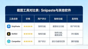 与市面上大多数截图工具相比,Snipaste 具有独特的优势。首先,它的操作非常简便,几乎不需要用户进行复杂的设置,所有截图功能都可以通过快捷键迅速启动。其次,Snipaste 支持自定义截图区域,甚至能够抓取透明窗口或弹出式菜单,这在很多专业场合中是必不可少的功能。此外,Snipaste 提供了强大的图像编辑功能,允许用户在截图上直接添加文本、箭头、矩形框等标注,方便用户快速完成图像的表达和传递。